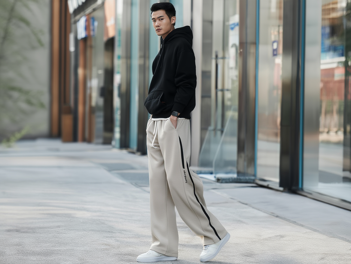 Upgrade your everyday style with these Men’s Beige Wide-Leg Track Pants, designed for those who love clean, modern, and effortlessly stylish streetwear.